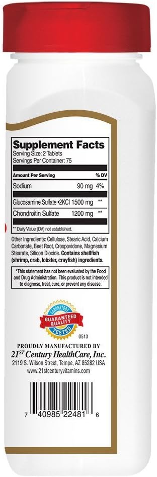21 st Century - Triple Fuerza, Glucosamina 750mg, Chondroitin 600mg - 150 tabletas