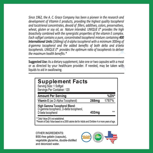 A.C. Grace company-Unique E high gamma mixed tocopherol concentrate, 120 capsulas