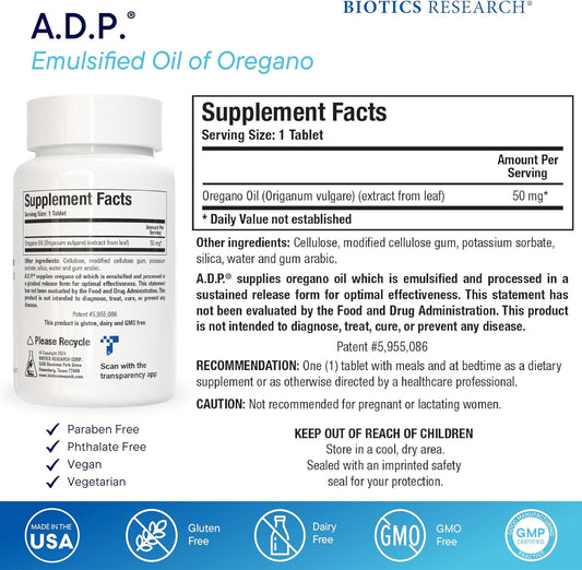 A.D.P complemento dietetico con aceite emulsionado de oregano , 120 capsulas
