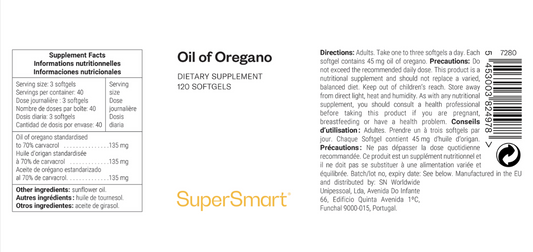 Aceite de oregano 135mg , Supersmart , 120 capsulas