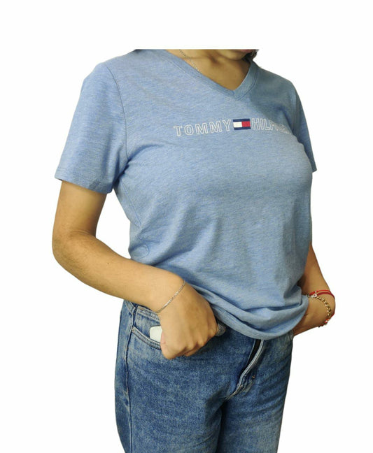 Polo casual de mujer color celeste de la marca Tommy Hilfiger