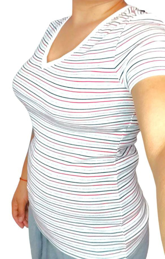 Polo Tommy Hilfiger para mujer de color blanco con franjas Azul, Rojo y Plomo
