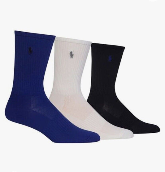 POLO RALPH LAUREN 3 pares de medias Technical Sport Ultra ligero, Azul - Blanco - Negro