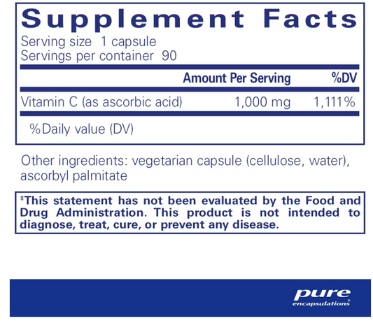 Pure Encapsulations ácido ascórbico Suplemento de vitamina C para defensa antioxidante 90 CAP