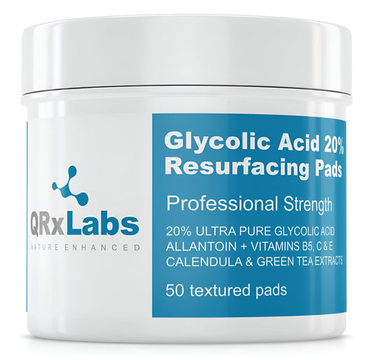 QRxLabs Almohadillas rejuvenecedoras de ácido glicólico al 20% con vitaminas B5, C y E, té verde, caléndula, alantoína
