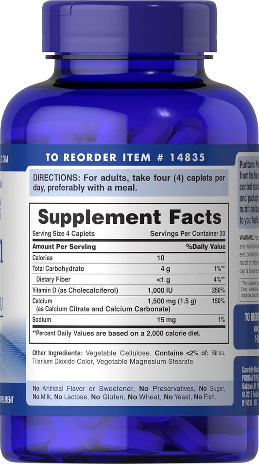 Puritans Pride Premium - Calcium 1500mg plus con Vitamina D3 25mcg(1000IU) - 120 tabletas