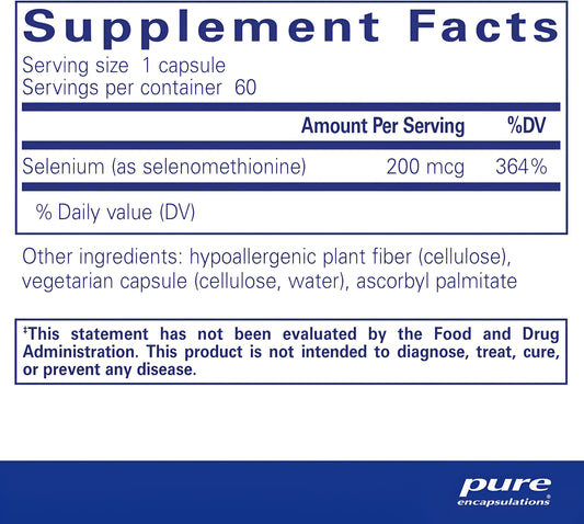 Pure Encapsulations Selenio 200mcg (Selenometionina) 60 Cápsulas.