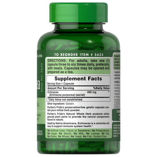 Puritan's Pride- Echinacea 400 mg 100 cápsulas