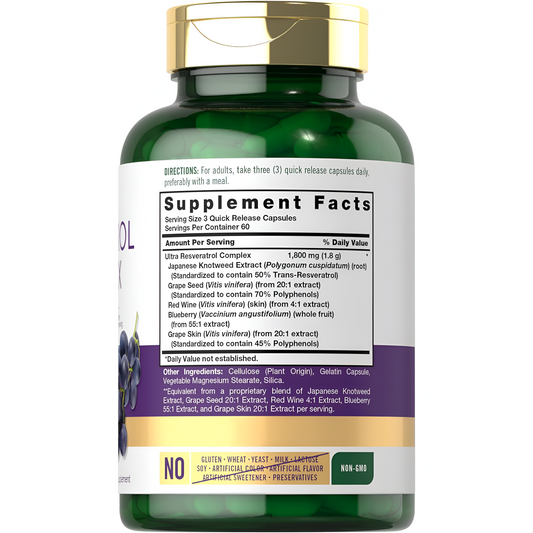 Resveratrol complex 1800mg , 180 capsulas - Carlyle
