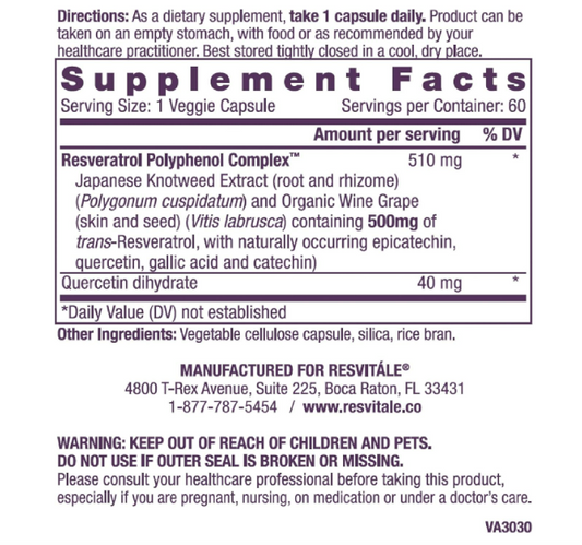 ResVitále Resveratrol 500 mg - Suplemento de resveratrol - 60 cápsulas vegetales