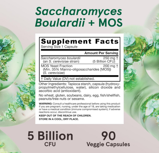 Saccharomyces Boulardil + MOS 5 billion , 90 capsulas - Jarrow Formulas