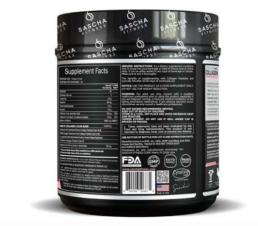 SASCHA FITNESS Péptidos de colágeno multi hidrolizados, 490g - Limonada de fresa