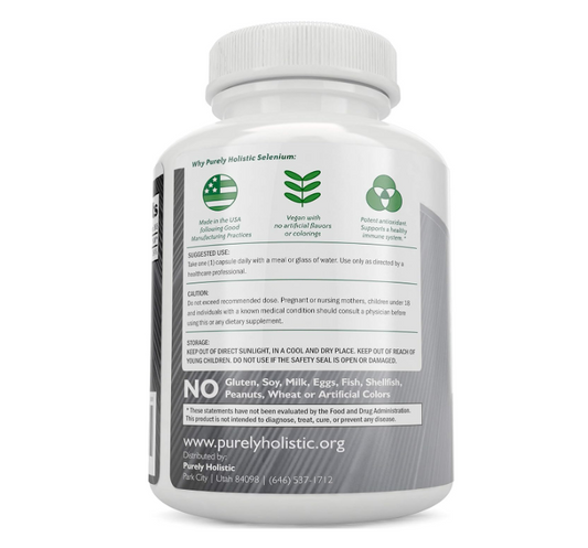 Selenio 200mcg, 365 cápsulas veganas- Purely Holistic