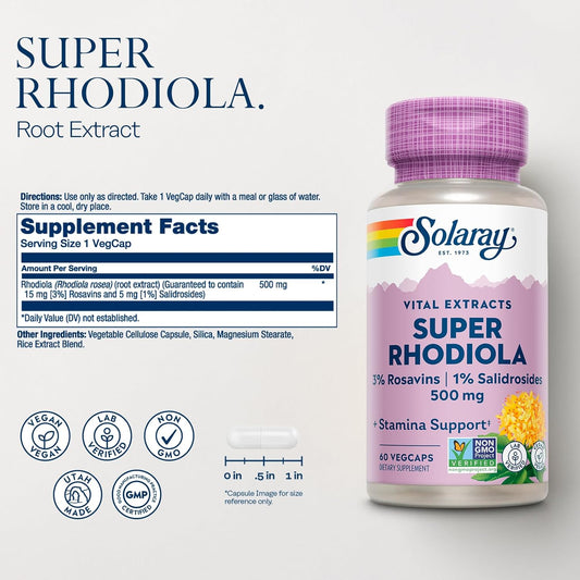 Solaray - Super Rhodiola 500mg(3% rosavins / 1% salidrosides), 60 capsulas