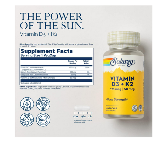 Solaray Vitamina D-3 con K-2, (125mcg/50mcg) 60 Cápsulas.