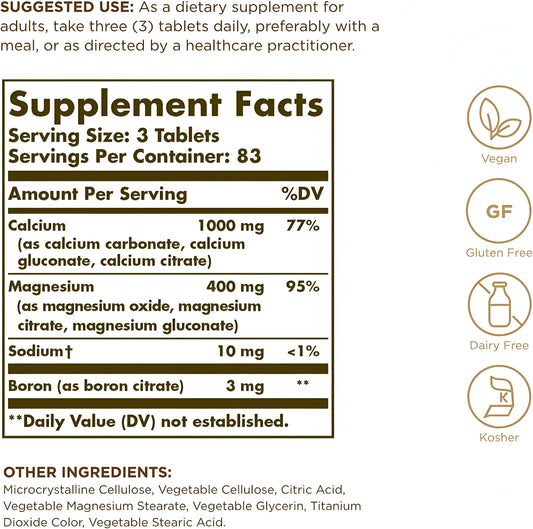 Solgar , Calcio Magnesio + Boron, 250 Tabletas
