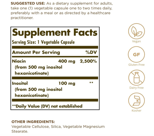 Solgar Niacin 500mg , NO-FLUSH , 100 tabletas