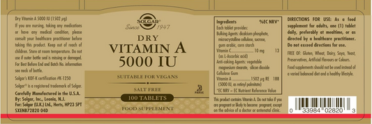 Solga - Dry Vitamina A 5000IU , 100 tabletas