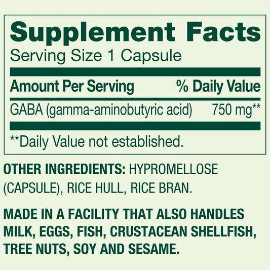 Spring Valley - Gaba 750mg, 100 Capsulas