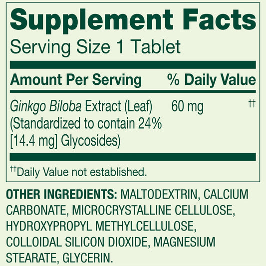 Spring Valley - Ginkgo Biloba 60mg, 240 Tabletas