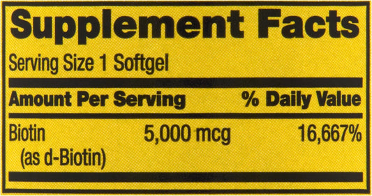 Spring Valley - Biotin 5000 mcg, 120 Softgels