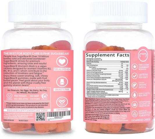 Sugar Bear Hair Multivitamínico vegano para mujer , 60 gomitas