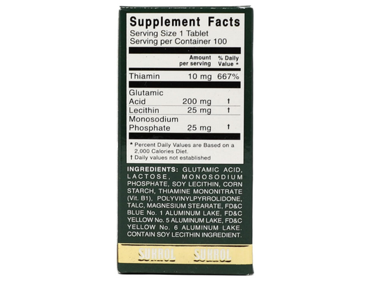 Sukrol, Ácido Glutámico, Lecitina y Thiamin, 100 Tabletas
