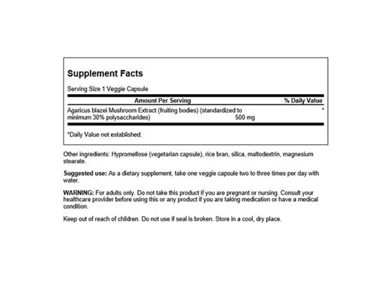 Swanson Agaricus Blazei Extracto de hongos 500 mg- 90 cápsulas vegetales