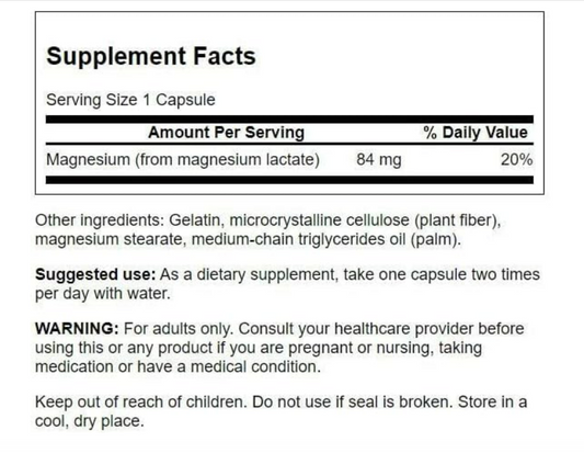 Swanson Lactato de magnesio 84mg , 120 capsulas