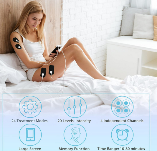 TENS estimulador muscular para alivio del dolor, 24 modos, 20 niveles de intensidad, masajeador de pulso eléctrico con pantalla grande, 8 almohadillas