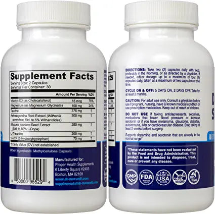 Suplementos de Serotonina y Dopamina. Mucuna Pruriens, 5-HTP, magnesio y más. DR. Maxell, 60 Capsulas.