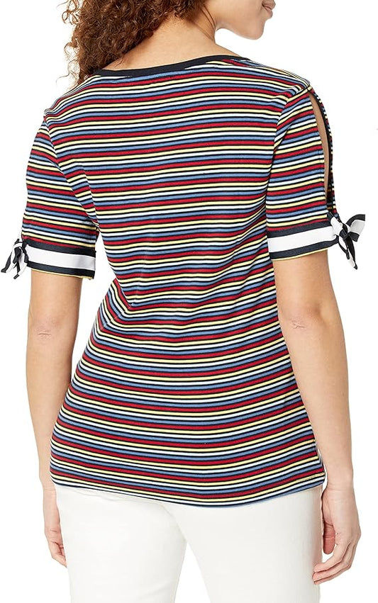 Tommy Hilfiger Camiseta de rayas de manga con lazo para mujer - Talla S