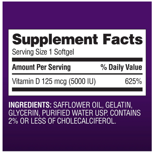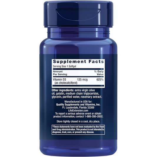 Vitamina D3 125mcg(5000IU) , 60 capsulas - Life Extension