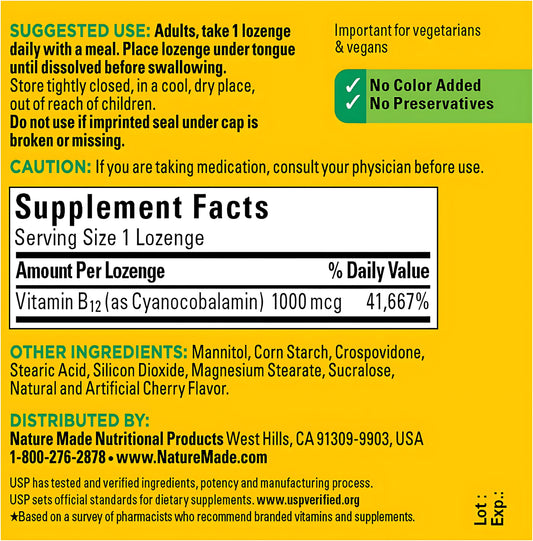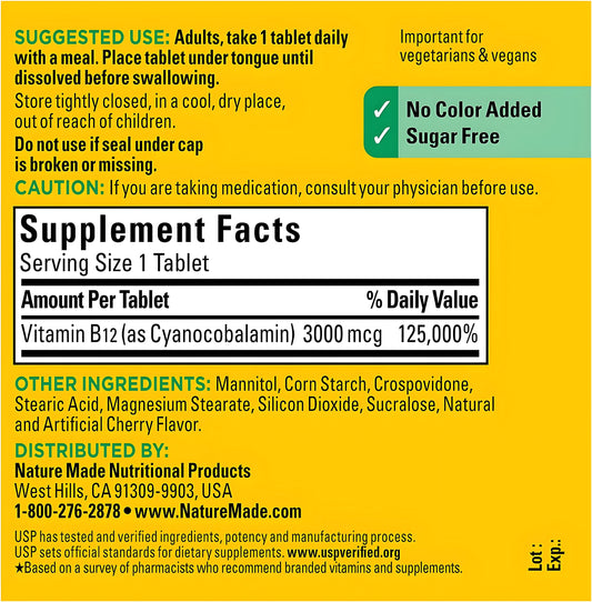 Vitamina B-12 Sublingual Nature Made 1000mg 50 Pastillas
