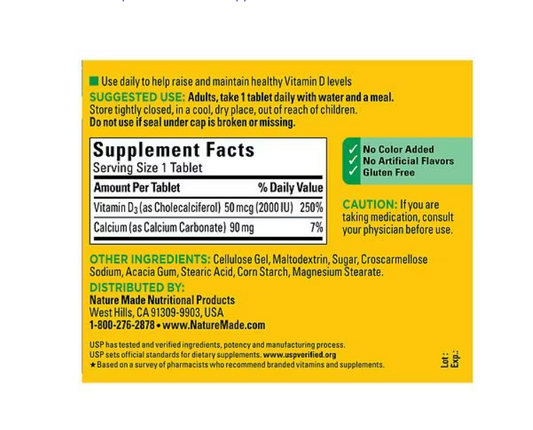 Vitamina D3 2000 IU (50 mcg) 220 tabletas - Nature Made