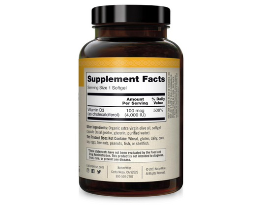 Vitamina D3 100mcg(4,000IU), 360 capsulas - Nature Wise