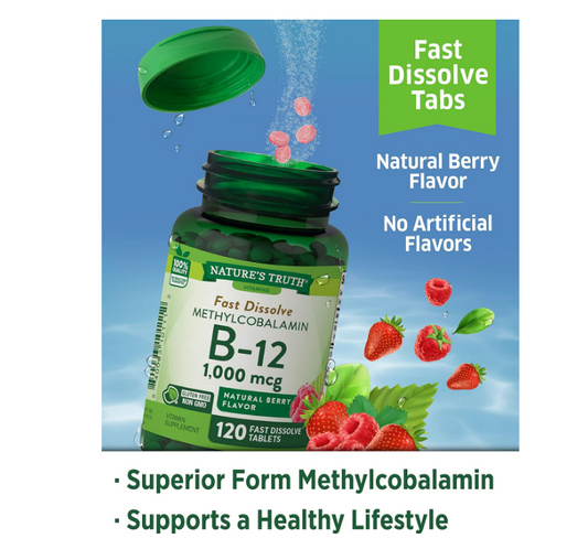 Vitamina B-12 1000mcg fast dissolve , 120 tabletas disolventes - Nature´s Truth
