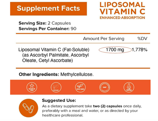 Vitamina C Liposomal NutriFlair 1700 mg, 180 Cápsulas - Alta absorción