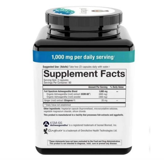 Youtheory Ashwagandha 1000mg - 180 Cápsulas Vegetarianas