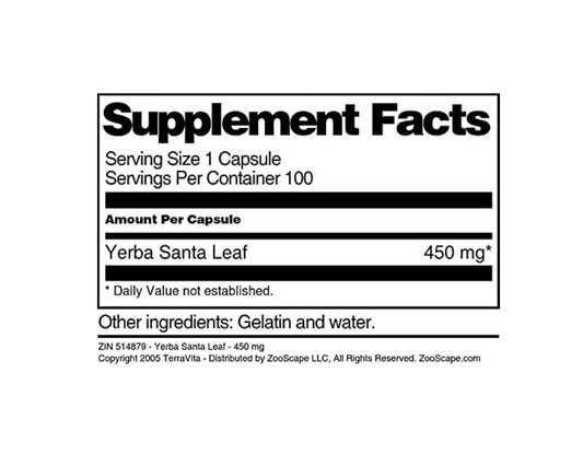Yerba Santa Leaf 450mg , 100 capsulas - Terravita
