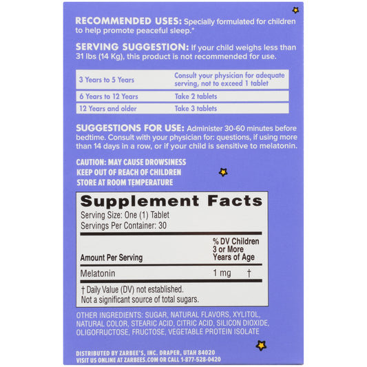 Zarbee's Naturals Children's Melatonin 30 Tabletas Masticables sabor a Uva