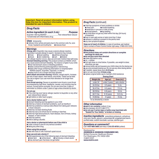 Children's Motrin Ibuprofeno Medicina para Niños, Sabor a Bayas, 8 fl. oz