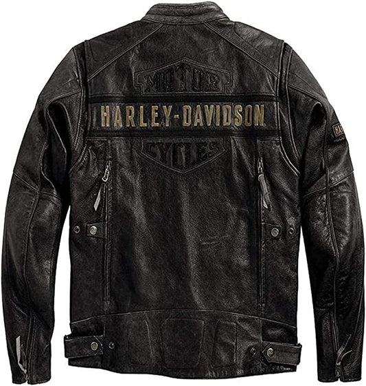 Chaqueta de cuero degastada para motocicleta Retro H-D Harley Vintage hombre, clásica Cafe Racer/ Men’s Retro H-D Harley Vintage Motorcycle Distressed Leather Jacket, Classic Biker Wear Cafe Racer Leather Jacket for Men