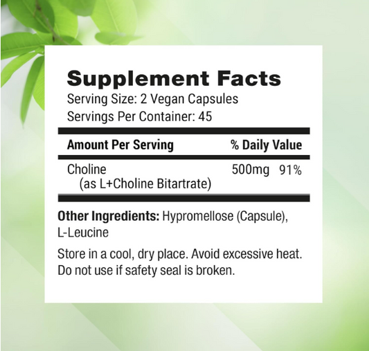 Choline 500mg, 90 capsulas vegetarianas - Nested Naturals