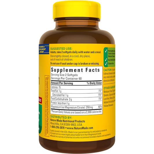 Citrato de Magnesio 250 mg 120/180 Cápsulas Blandas-Nature Made