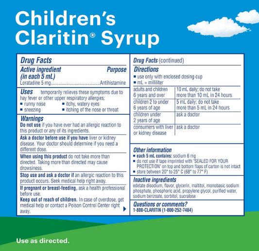 Claritin childrens para alergias las 24 horas para niños ,240ml