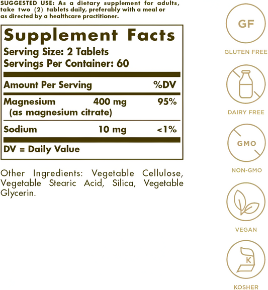 Citrato de Magnesio 400mg , 120 tabletas - Solgar