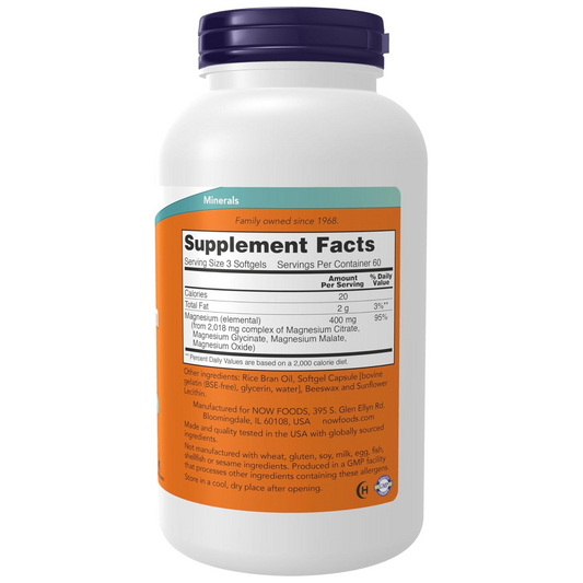 Citrato de Magnesio Now 400 mg - 180 Capsulas de Gel.