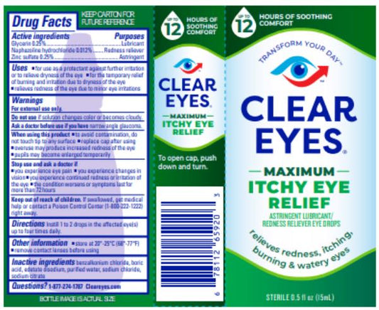 Clear Eyes máximo alivio de picazon de la vista, 15ml.
