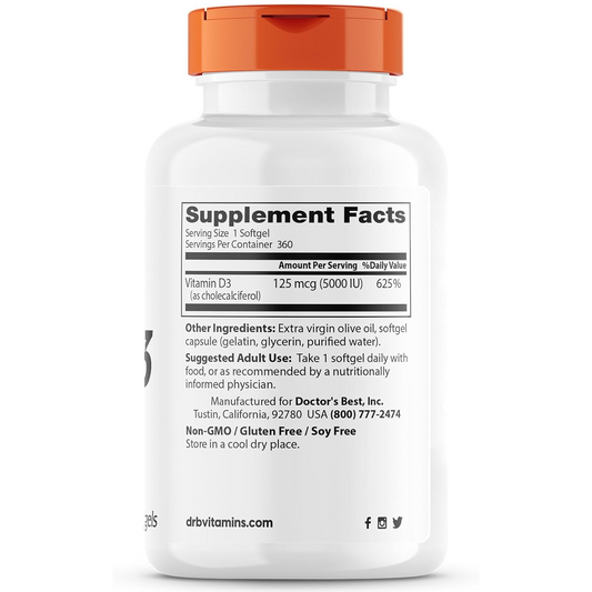 Doctor's Best, Vitamina D3 5000iu, 360 píldoras blandas